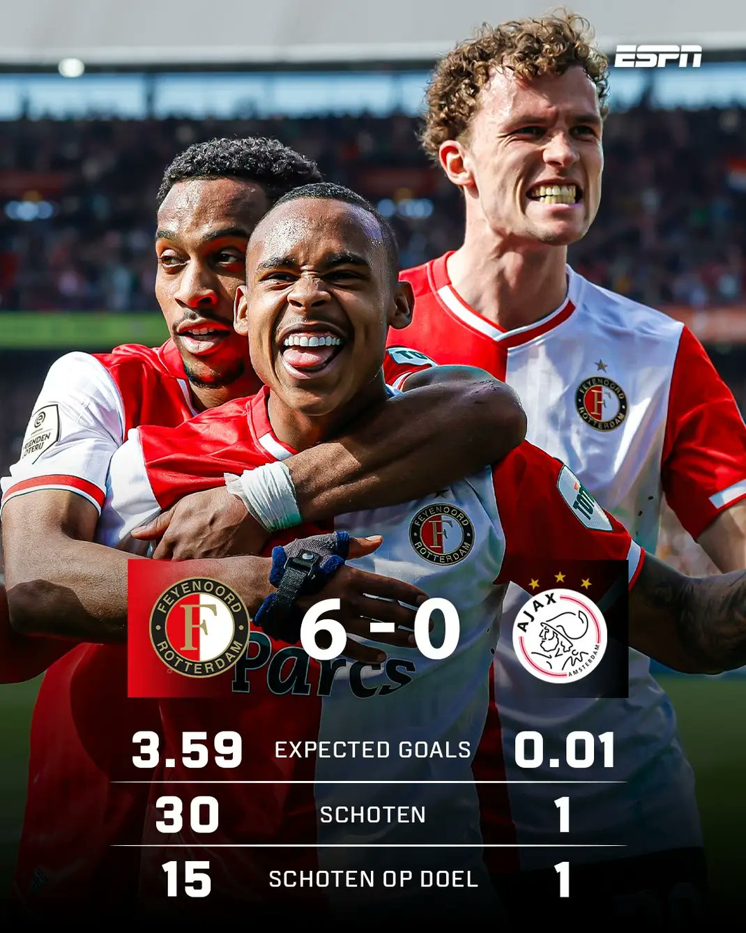 6-1-3 in het voordeel van Ajax de laatste 10 edities van de klassieker...quote:Op dinsdag 29 oktober 2024 16:29 schreef Solispolar het volgende: