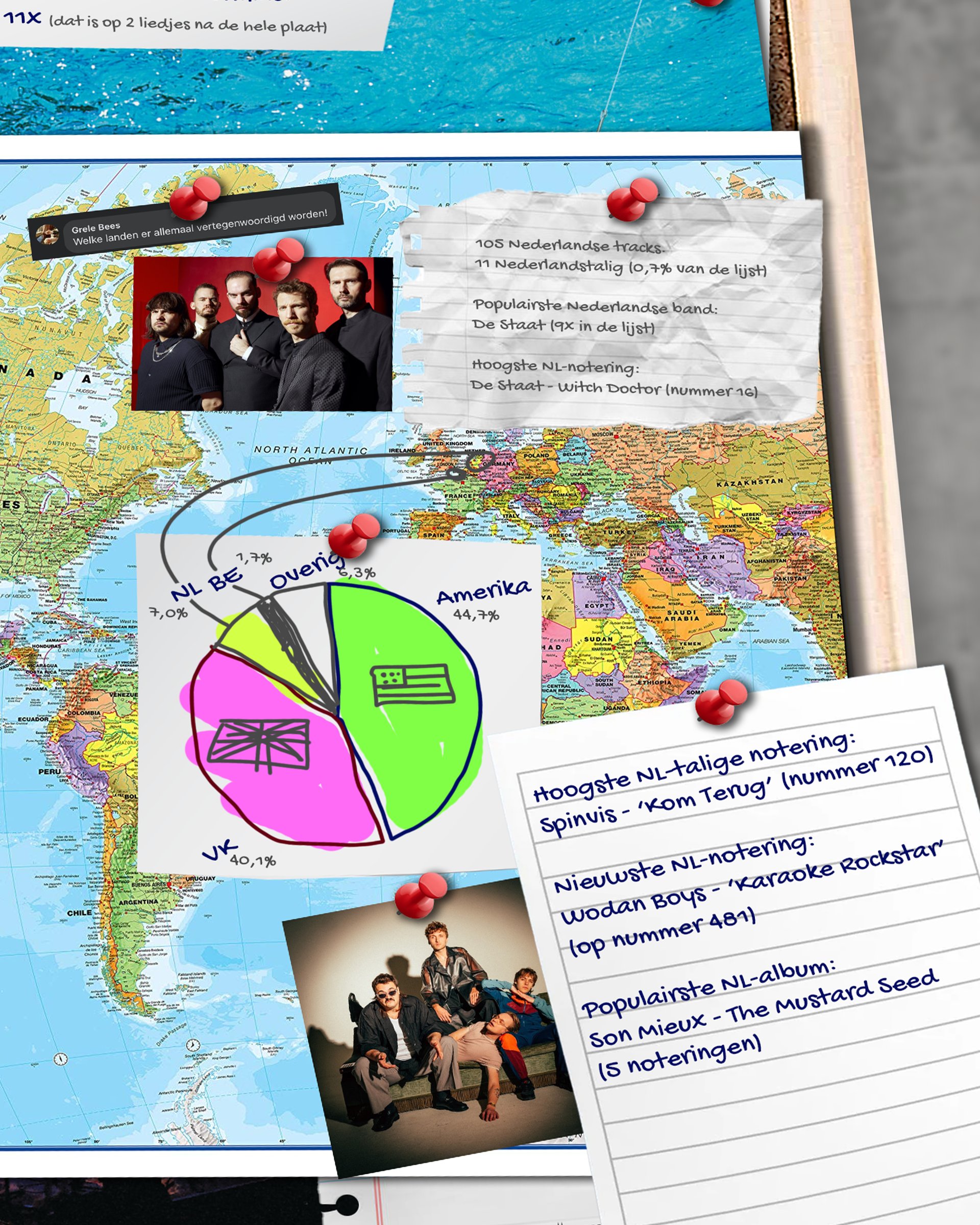 | 306 Linkin Park Crawling 307 Bjork Human Behaviour 311 Editors Sugar 318 Coldplay The Scientist 327 Echo & The Bunnymen Killing Moon 328 Bush Machinehead 332 Rammstein Dicke Titten 338 Pixies Monkey Gone to Heaven 348 Tool Fear Inoculum 351 Radiohead Fake Plastic Trees 359 Chemical Brothers Hey Boy Hey Girl 365 Cure Pictures Of You 368 IDLES Danny Nedelko 369 Beatles Here Comes The Sun 377 Spinvis Kom Terug 378 Muse New Born 397 The Last Dinner Party Sinner 400 Wolf Alice Smile 467 De Staat Pikachu 498 Saybia I Surrender 522 Deep Purple Child In Time 535 Nick Cave & The Bad Seeds Red Right Hand 581 Bruce Springsteen Badlands 602 Linkin Park Bleed It Out 710 Talk Talk Such A Shame Dit zijn de andere platen die er uit zouden kunnen zijn, al kan ik het me bij de meeste nauwelijks voorstellen. Smile, Pikachu en Bleed It Out zitten in de gevarenzone. De rest lijkt me eigenlijk wel een zekerheidje. | |