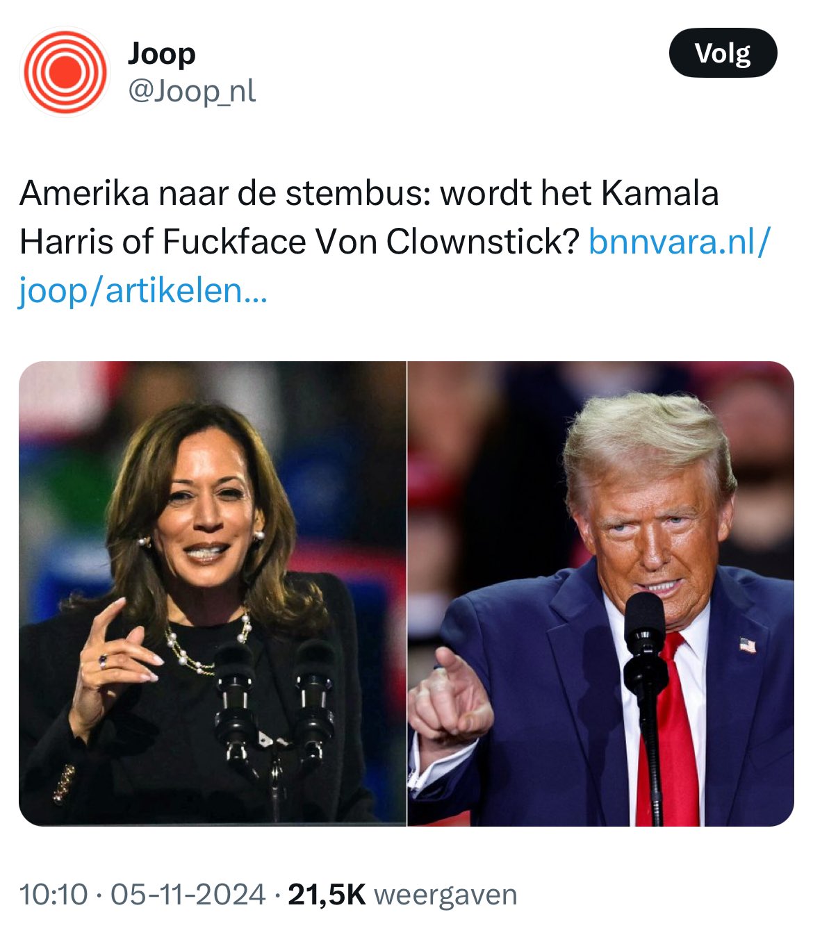 Veel fake news vooral.quote:Op woensdag 6 november 2024 17:12 schreef KoosVogels het volgende: