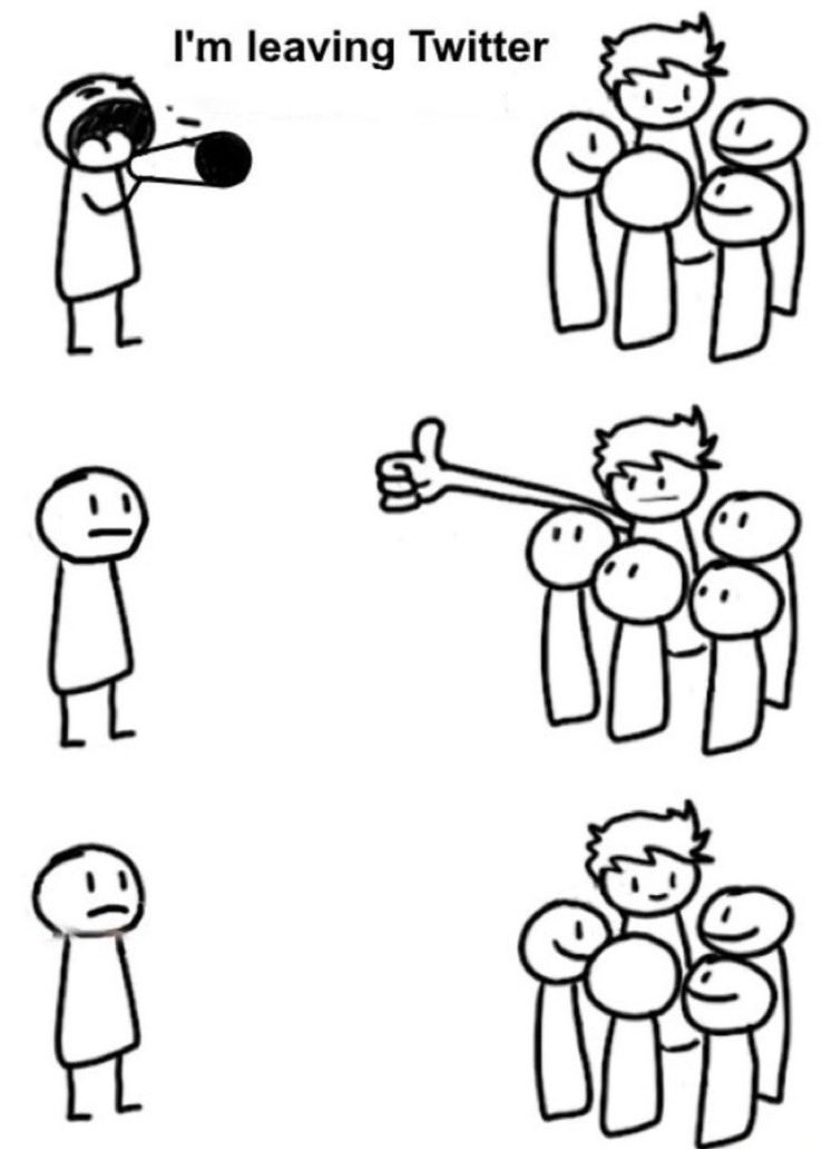Wat mij betreft verdwijn je gewoon met stille trom. Maar om zulke mensen nu "walgelijk" te noemen omdat ze niet meer op je favoriete social media zitten.