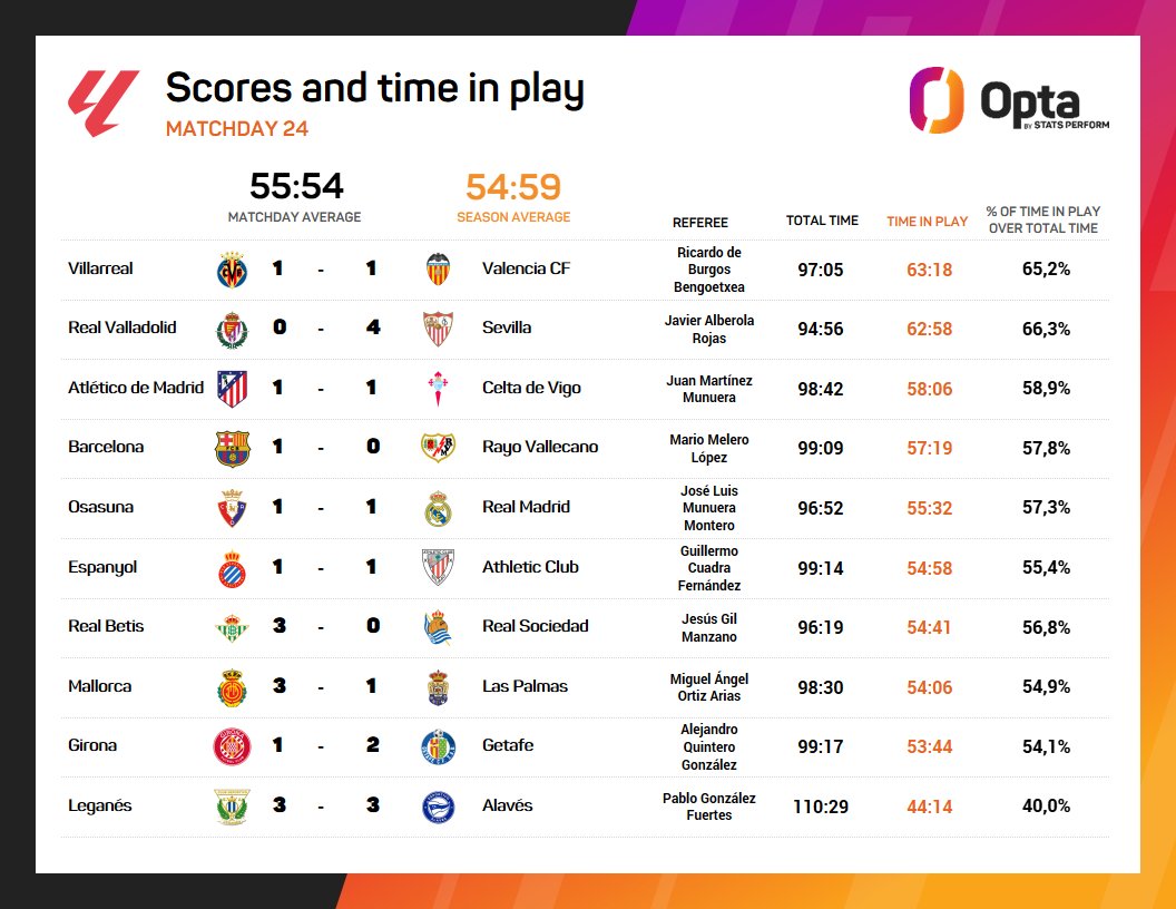 Grappig genoeg zou ‘bal in de handen’ daar niet tussen horen, omdat de bal in het spel is en het dus hoort tot de zuivere speeltijd.quote:Op zaterdag 1 maart 2025 17:28 schreef Alaphilippe_ het volgende: