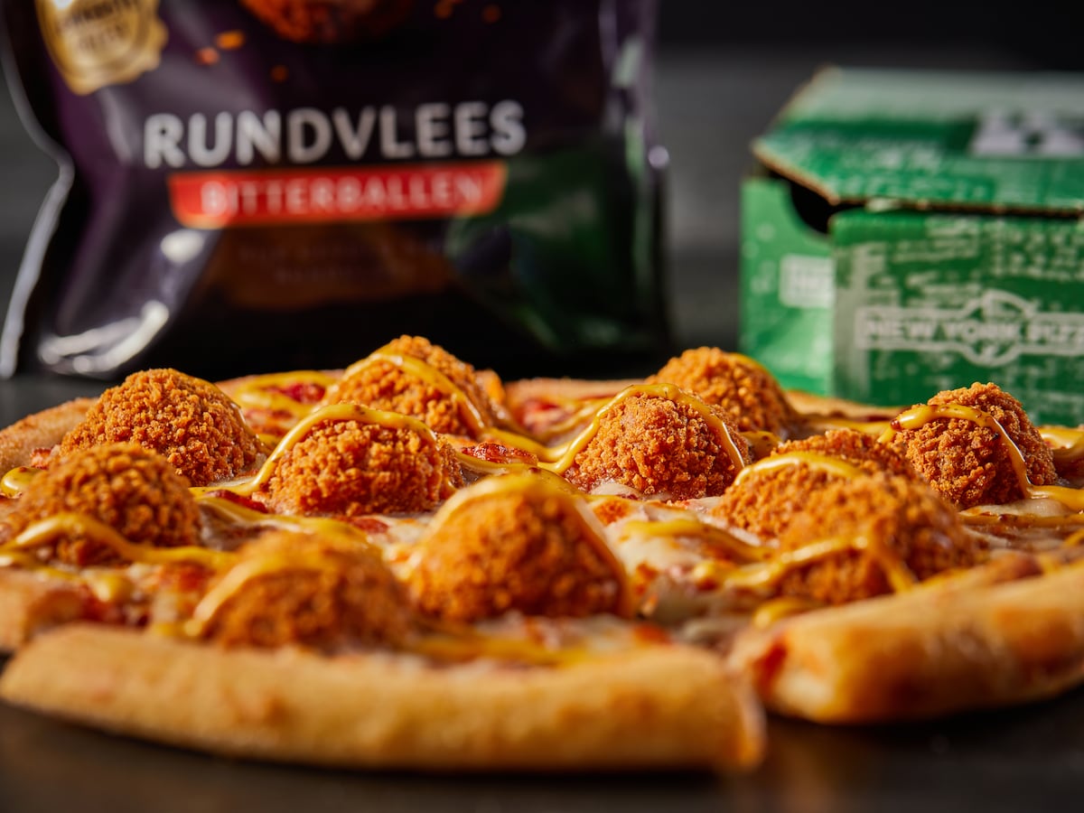 Overigens over goede eetcultuur gesproken. Ik zat dus laatst op een verjaardag waar New York Pizza werd besteld. Waren de kinderen blijkbaar gek op. En aangezien ik daar niet gek op ben, heb ik wel van de gelegenheid gebruik gemaakt om bitterballen pizza die steeds op Tiktok voorbij kwam te testen. En ik moet zeggen, dat was wel zo fout dat het goed was.