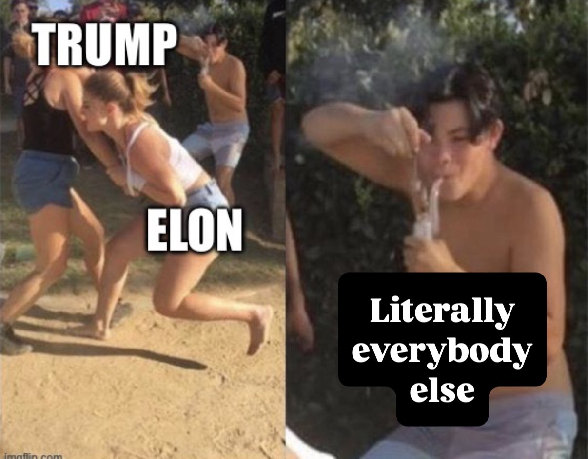 Een catfight tussen Musk en Trump, dat ze elkaar maar helemaal kapot mogen maken. En laten wij ondertussen vooral Tesla geen euro meer gunnen :9