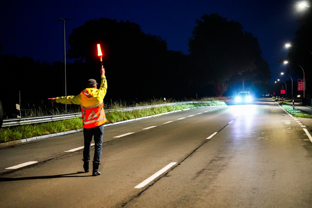 | "De actie van zaterdagavond in Rütenbrock liep al snel uit op een opmerkelijk tafereel. Toen de groep een auto uit Duitsland wilde aanhouden, bleek het een busje van de Duitse politie te zijn. De Duitse agenten waren niet gediend van de burgercontrole en sommeerden de actievoerders onmiddellijk het Duitse grondgebied te verlaten. Als ze dat niet deden, zouden hun voertuigen worden weggesleept, kregen ze te horen." | |
