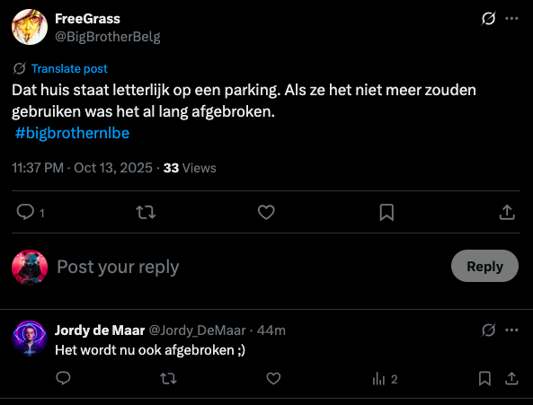 Ik zie gewoon exact het BB-huis en groene omheining in de verte op je gif hoor 😅 (op het einde van de gif). Staat er dus gewoon nog.