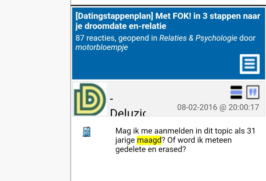 Wat? Ik ben een stalker omdat ik volgens jou een ik bericht plaats? Gaat alles verder wel goed met je? | |