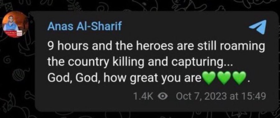 Je komt niet verder dan een 'als...dan'-redenering. Waaruit blijkt precies dat hij 'soldaat at night' was? Nogmaals, hij is bekend omdat hij verslag doet op Al Jazeera en op sociale media. Naar ik begrijp doet hij dat op betrokken en relatief 'faire' wijze, zonder haatpropaganda te verspreiden en op te roepen tot geweld.quote:Op maandag 11 augustus 2025 18:27 schreef HowardRoark het volgende: