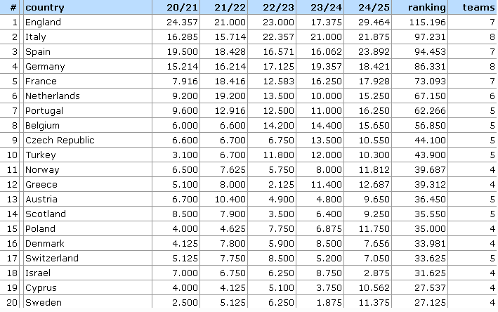 Als Nederland dit seizoen 6e weet te blijven dan heb je in seizoen 2026/2027 & seizoen 2027/2028 nog altijd 3 CL plekken. Access list loopt altijd een jaar achter.