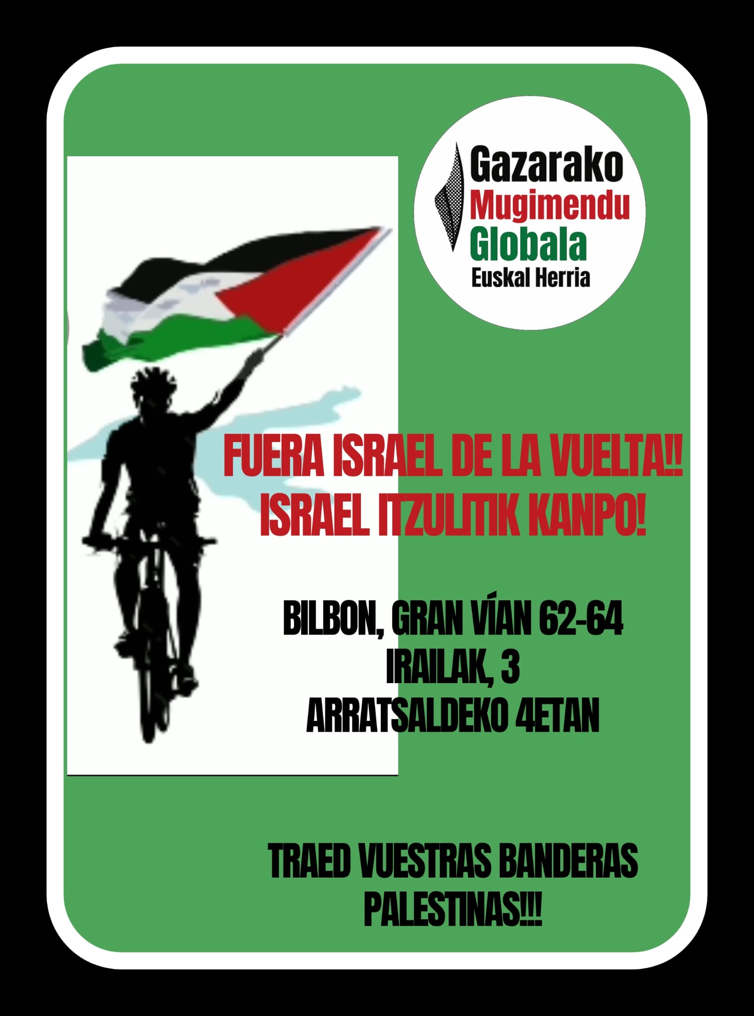 Etapa 11: Bilbao - Bilbao, 157,4 kmDe dag begon weer geestig, met een ziedende Ayuso bij de start. In een interview vooraf noemde hij zijn ploeg een dictatuur, gaf hij aan dat Almeida terecht zijn excuses had aangeboden en ga zo maar door. Ze willen zijn imago schaden! Dat hij daar zelf een stevige bijdrage aan heeft geleverd vergeten we maar even. Deze Vuelta is geen uitstekende koers, wel een uitstekende soap. De start vond plaats buiten beeld en vaak krijgen we dan te maken met een leuke start. Als er geen beelden zijn doen de renners ineens hun best, heel typisch is dat. In het eerste uur werkten ze 50 kilometer af, terwijl er geen vlucht ontstond. Iedere kopgroep werd meteen weer ingerekend, men was de eerste paar uur continu kop over kop aan het demarreren. Het ging zo hard in het peloton dat de boel een paar keer uit elkaar werd gereden, rode trui Traeen zat op een bepaald moment op een gaatje, maar alles kwam continu weer terug. Er werd een valpartij gemeld, met Raul Garcia Pierna als grootste slachtoffer. Hij was sterk aan het rijden deze Vuelta, maar na die valpartij moest hij de strijd staken. Jorgenson viel ook, konden we zien toen de uitzending begon. Hij hing bij de dokter aan de wagen, dat was zo ongeveer het eerste beeld. Vaak ontstaat de kopgroep net voor de uitzending begint, maar nu een keer niet. Er werd nog steeds slag om slinger gedemarreerd toen de uitzending al lang en breed bezig was. Ook in het tweede uur van de koers reden de renners nog tegen een gemiddelde van 50. We bevonden ons al op 80 kilometer van het eind en op dat punt ging Campenaerts ineens versnellen in een afdaling, met Vingegaard in zijn wiel. In het wiel van Vingegaard zaten nog een paar renners, maar er viel al snel een gat. Lag alles ineens helemaal uit elkaar, gewoon, tijdens een unipuerto. De renners reden als gekken, het was oprecht een gekkenhuis. Ook dankzij de Baskische fans, we bevonden ons in Nafarroa en daar heeft de plaatselijke vlaggenboer een recordomzet gedraaid. In ieder dorpje waren er tientallen Palestijnse vlaggen te zien, terwijl er ook allemaal verstandige teksten op de weg werden aangebracht. Stop genocide, boikot Israel, Netanyahu asesino, het laat aan duidelijkheid niets te wensen over. Die teksten en de vlaggen zijn een prima en terecht protest, het was wel jammer dat er een paar onverlaten besloten het peloton in te rennen. Dat moet je niet doen, dat is levensgevaarlijk voor jezelf en voor anderen. Een smetje op een protest dat verder keurig was. In Spanje en nog meer in het Baskenland hebben ze beter in de gaten wat er aan de andere kant van de wereld aan de hand is dan hier. Goed, de groep van Vingegaard werd weer ingerekend en een paar kilometer later reed de vlucht van de dag dan eindelijk weg. Of nouja, dat had ook nog wel wat voeten in de aarde. Er reed een grote groep weg, daar reden een paar renners naartoe, en nog een paar renners, en nog een renner, en zo ging het door tot we met een groep van 30 man te maken kregen. Een van de late overstekers was Jay Vine, toen hadden we wel alweer een vermoeden.