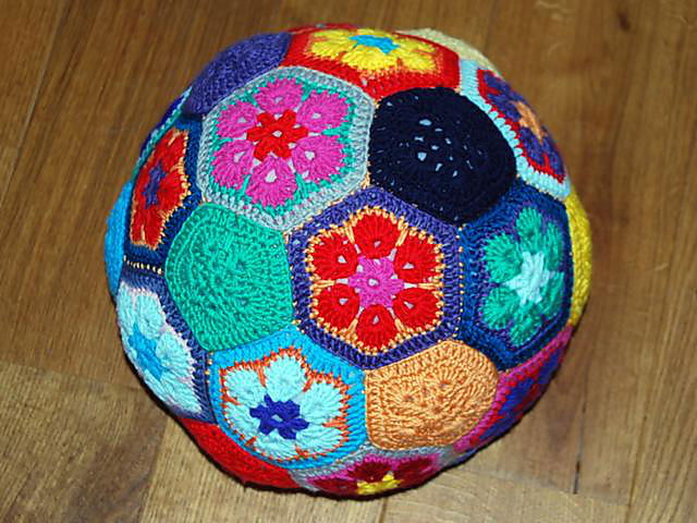 Het is een Afrikaanse bloem, ze maken daar ook zachte ballen van. Paar vierkanten aan elkaar en je hebt een zachte bal