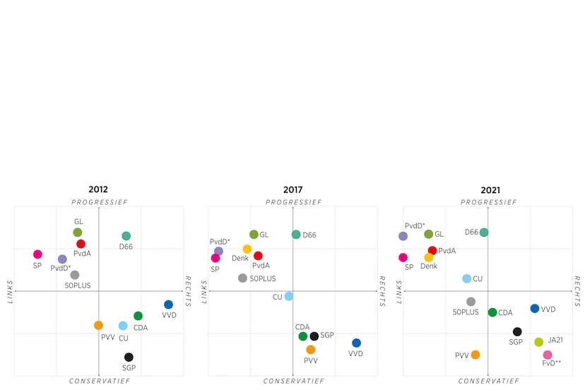 Mja, het lijkt economisch allemaal wat linkser te worden maar ik kan niet helemaal bedenken waarin je dat concreet terug ziet. Cultureel verschuift er weinig, hoewel het kompas van 23 juist op die as verschuiving naar beide flanken laat zien.