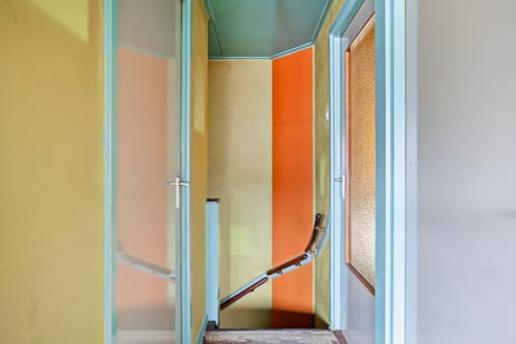 Het is een standaard begin 1970 huis waar waarschijnlijk het eerste of misschien het tweede gezin in heeft gewoond. En de woning zo gelaten als deze was. Qua wandbekleding en gemetselde bank niet heel gek.