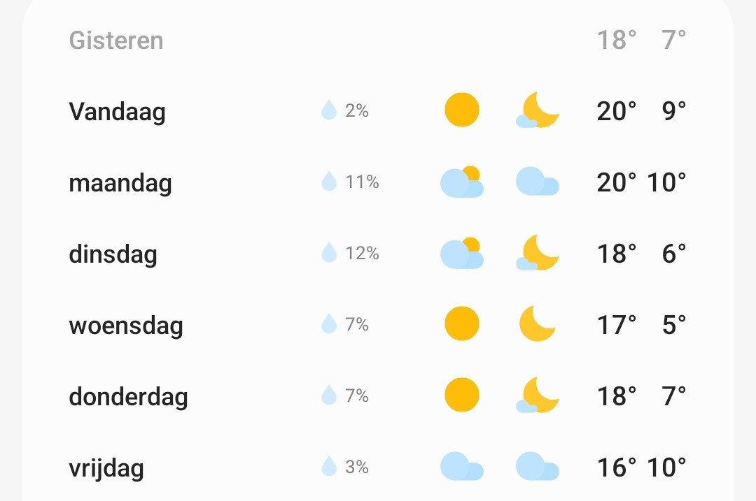 Ja was het nog warm, nu is het de hele week al fris.. vandaag weer saai grauwe regenquote:Op zaterdag 27 september 2025 08:25 schreef INViCTuS het volgende: