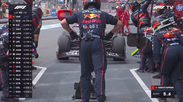 Georgie Russell boos op de radio omdat Verstappen slingert op het recht stuk.