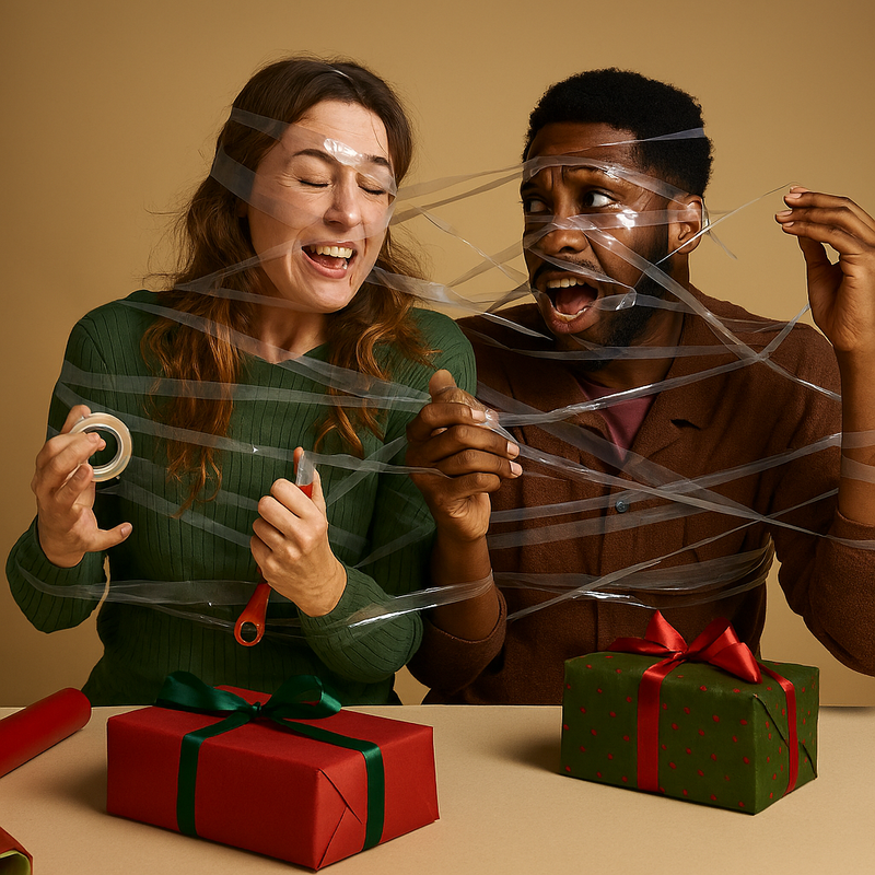 Wel bijzonder dat deze mensen zo falen met hun plakband maar wel prachtig ingepakte pakketjes hebben met een strik en alles. _O-
