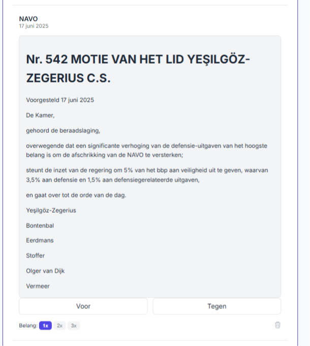 Beantwoorden, als de titel niet duidelijk is druk je er op en krijg je een uitleg van de motie.