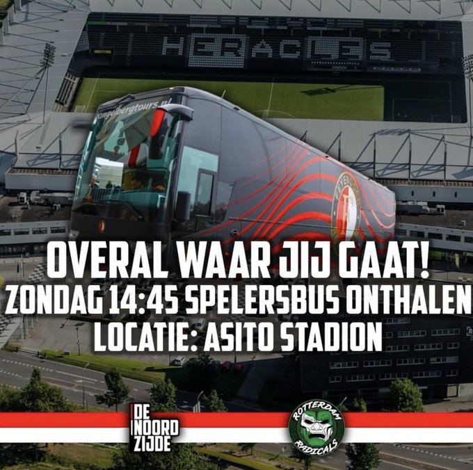 In het uitvak bij Heracles – Feyenoord zullen geen fanatieke supporters aanwezig zijn, maar zij zullen wel naar Almelo afreizen om de spelersbus van Feyenoord te onthalen.