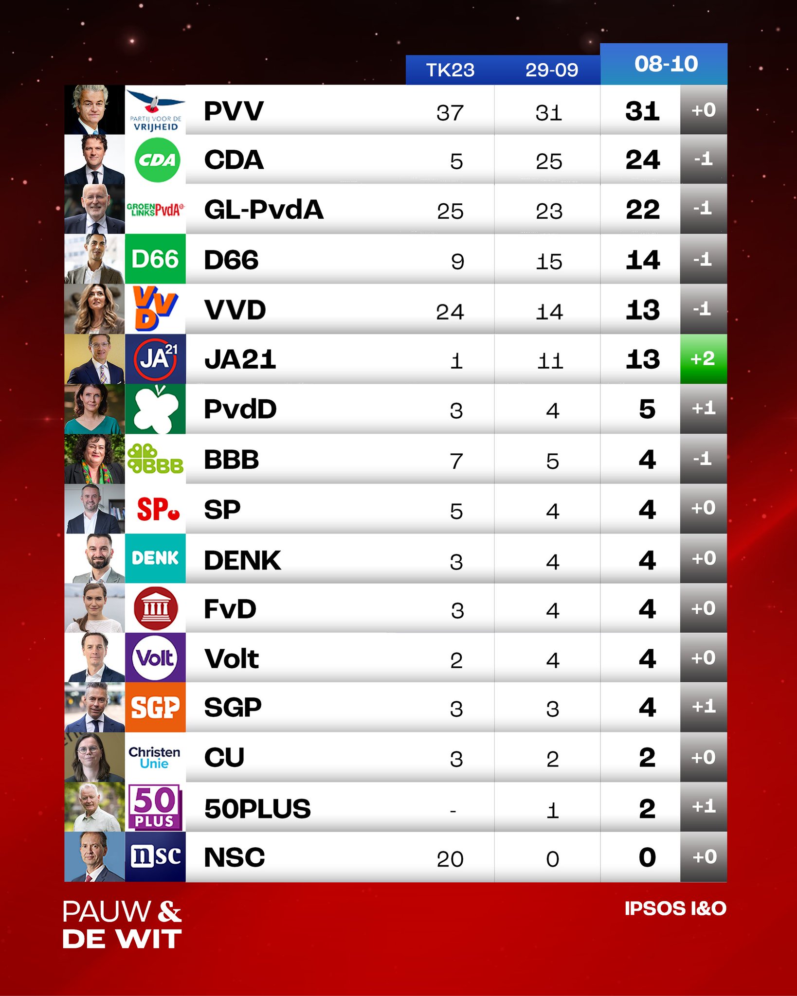 Ik denk dat dat komt omdat er nog geen grote debatten zijn geweest en de doorrekeningen van de partijprogramma's ook nog niet binnen zijn.quote:Op donderdag 9 oktober 2025 08:55 schreef Lichtloper het volgende: