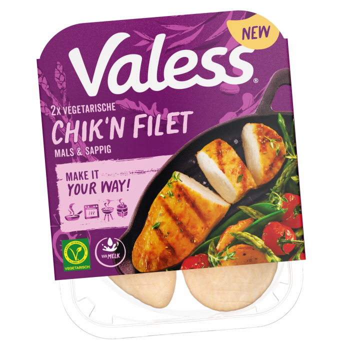 Zeg dan iets als Vegetarische stukjes en dan kleiner, met kipsmaak. Dan klopt het al beter. | |