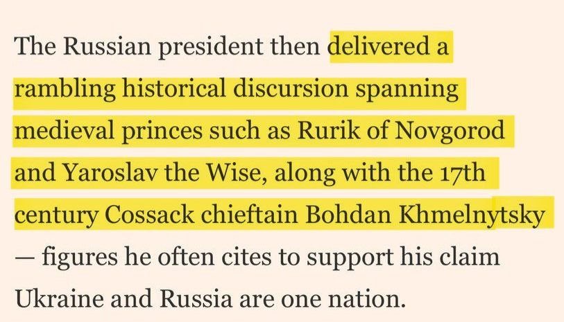 | Interessant. Tevens cliche, putin die blijkbaar echt weer met historisch kontverhaal over rurik komt. | |