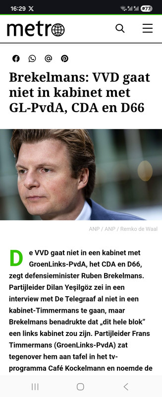 CDA heeft ook al aangegeven niet in zo'n kabinet te willen. Vermoedelijk willen die niet zonder VVD in een kabinet dus dat is een package deal.
