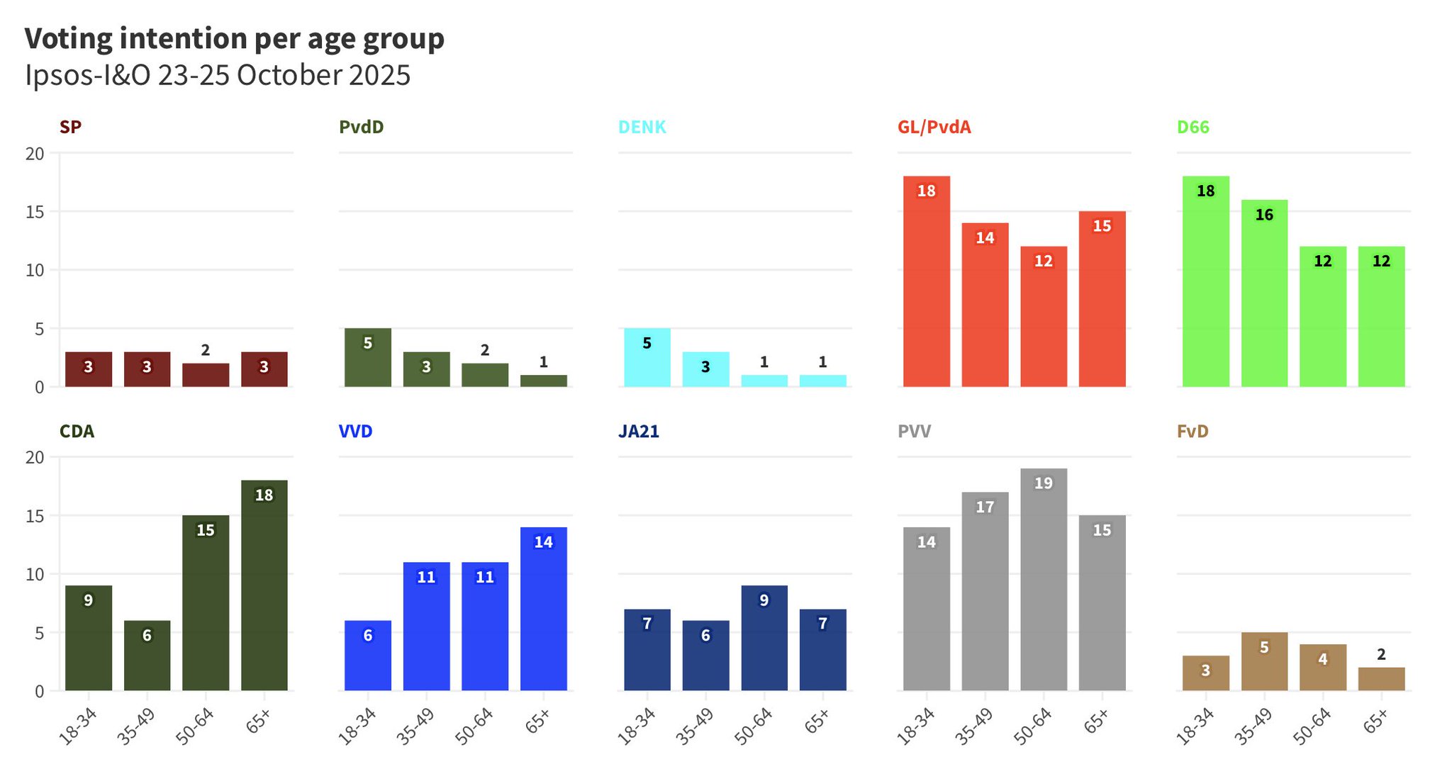 Ik hoorde gisteren bij Pauw&De Wit dat Ipsos morgen met een nieuwe peiling komt, weet niet of één van de anderen dan vandaag nog wat lanceert.quote:Op vrijdag 24 oktober 2025 10:05 schreef Tomatenboer het volgende: