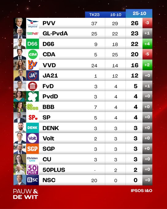Jawel. D66 wordt de grootste partij. Zij hebben nu de wind mee. Bontenbal heeft met zijn uitspraken over artikel 23 teveel mensen afgeschrikt en daarmee zijn kans op het premierschap verspeeld.quote:Op zaterdag 25 oktober 2025 19:06 schreef Diabool het volgende:
