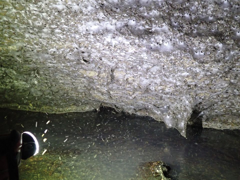 Ze zullen echt niet alleen van muggen leven in die grot, spinnen zijn nogal kannibalistisch dus die vreten elkaar ook gewoon op.