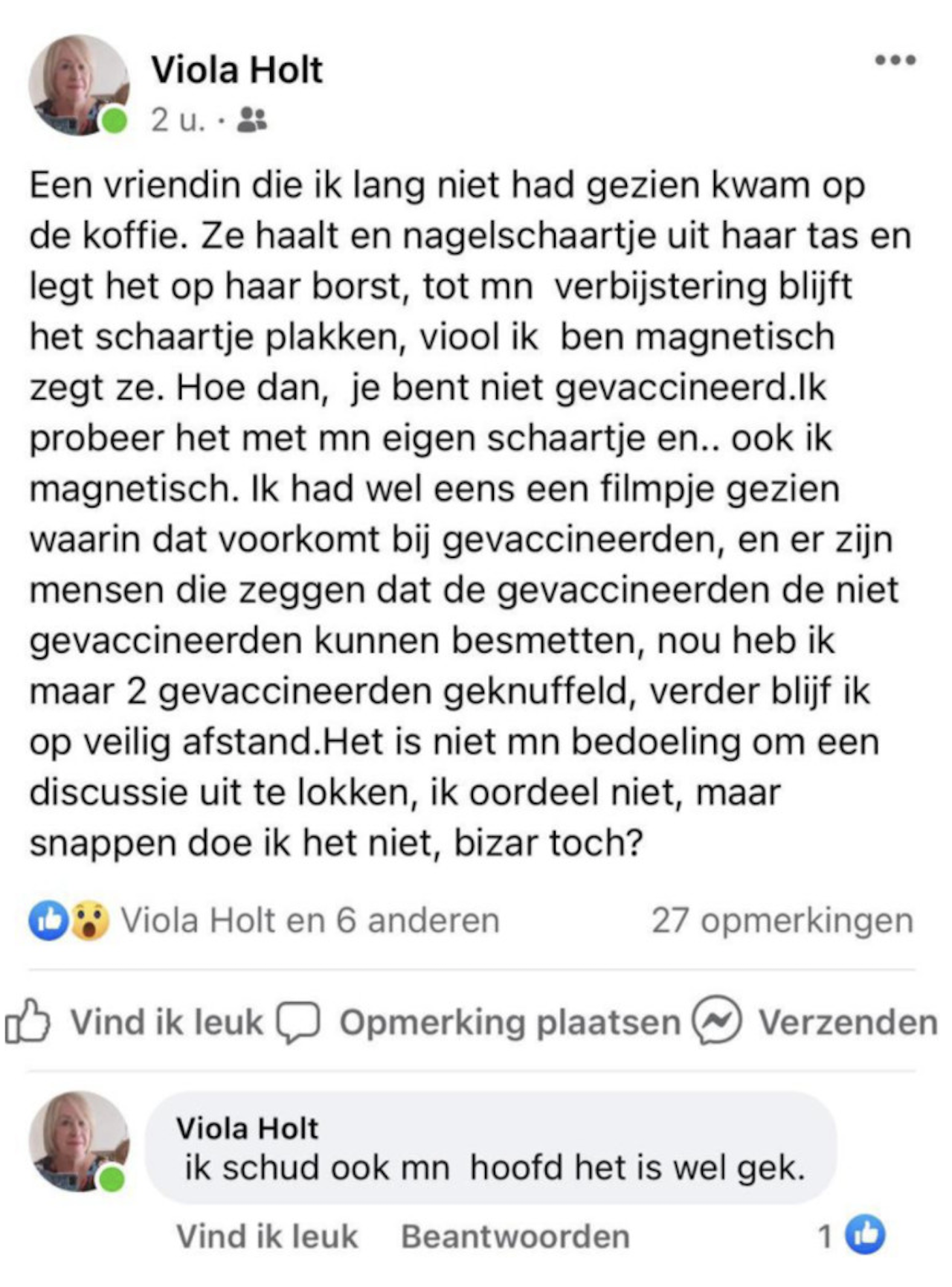 quote:Paragnost en reikimaster Thomas Woolthuis (66) was jarenlang een van de meest nabije vrienden van Viola. Hij kreeg het bericht donderdagavond van Viola’s man Peter, met wie zij 37 jaar samen was.