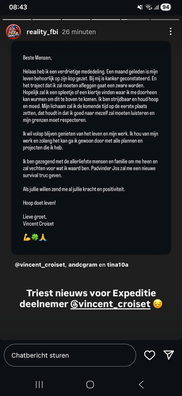 | Wat een verdrietig nieuws, zo'n aardige man. Bizar dat je dan net voor zo'n diagnose nog zo lang in de Expeditie kan zitten. Menselijk lichaam is echt wonderlijk. | |