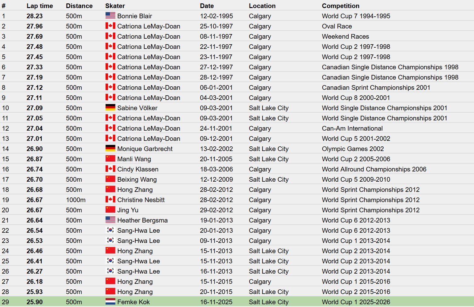 Die 25,90 is het snelste rondje van een vrouwelijke schaatser ooit.