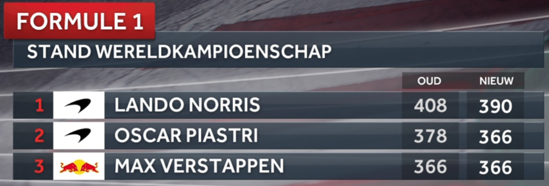 Waarom wordt Max in alle rijtjes nog steeds als 3e weergegeven. Hij heeft toch meer overwinningen dan Piastri? Dan zou hij er toch boven moeten staan?