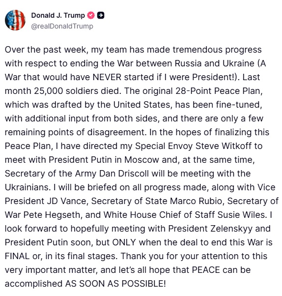 Volgens mij verwar je Witkoff met Rutte.quote:Op woensdag 26 november 2025 11:56 schreef TLC het volgende: