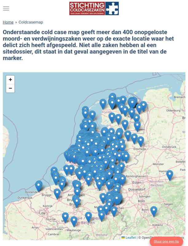 Bizar, heb een paar in omgeving Eindhoven opgezocht. Ook eentje waarbij de vermoedelijke dader waarschijnlijk al gepakt was (haar ex-vriend), maar vanwege gebrek aan bewijs vrijgelaten (Ine Wijnen - https://www.coldcasezaken.nl/ine-wijnen).