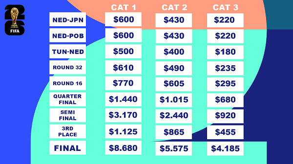 Dan moeten ze prijzen gaan dumpen voor bepaalde wedstrijden, anders gaan wedstrijden als Curaçao vs Ivoorkust, Nieuw-Zeeland vs Egypte, Kaap Verdië vs Saudi Arabië en Ghana vs Panama echt geen volle stadions trekken.