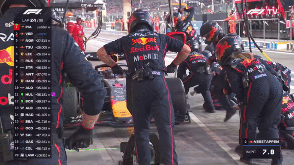 | Norris gaat echt een probleem hebben als ie nog een keer naar binnen moet | |