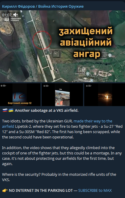 Enemy Su-30 and Su-27 fighters were hit - video and details of the unique GUR operation in Lipetsk. On the night of December 20-21, 2025, a fire broke out at a Russian military airfield near Lipetsk — two expensive enemy Su-30 and Su-27 fighters were burning.