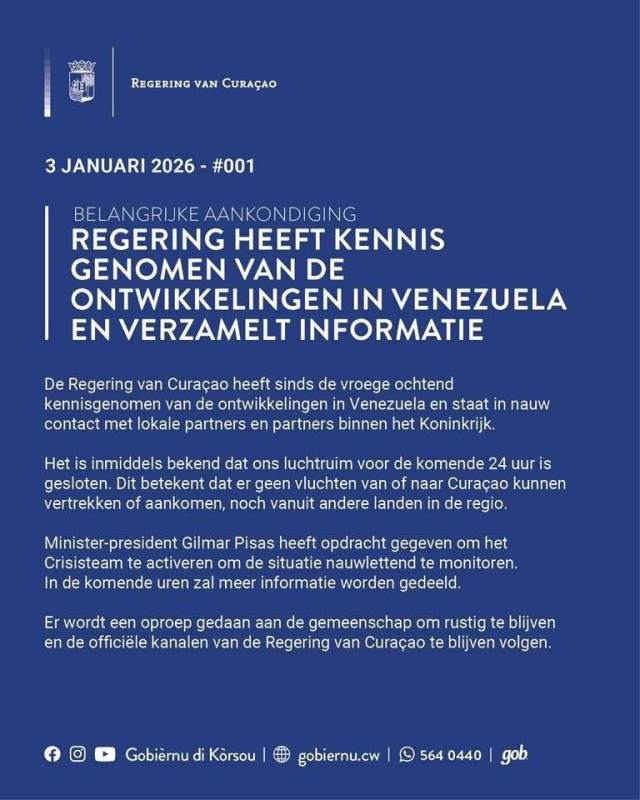 "In Venezuela werden de bewoners opgeschrikt door de bombardementen toen het nog midden in de nacht was. Veel bewoners wachten ondertussen in spanning af wat deze dag gaat brengen. Kopstukken rondom Maduro, zoals vicepresident Delcy Rodríguez, hebben zich ondertussen fel uitgesproken tegen de Amerikaanse aanvallen en beschuldigen de VS ervan dat ze Maduro en zijn echtgenote hebben ontvoerd en eisen een teken van leven.