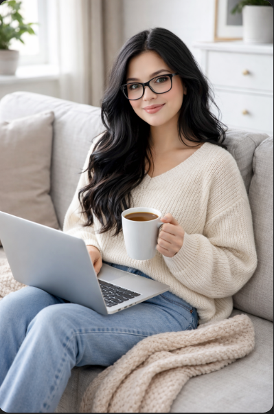 Haha best wel on point met de laptop op schoot en thee in een grote mok met die kleding aan!