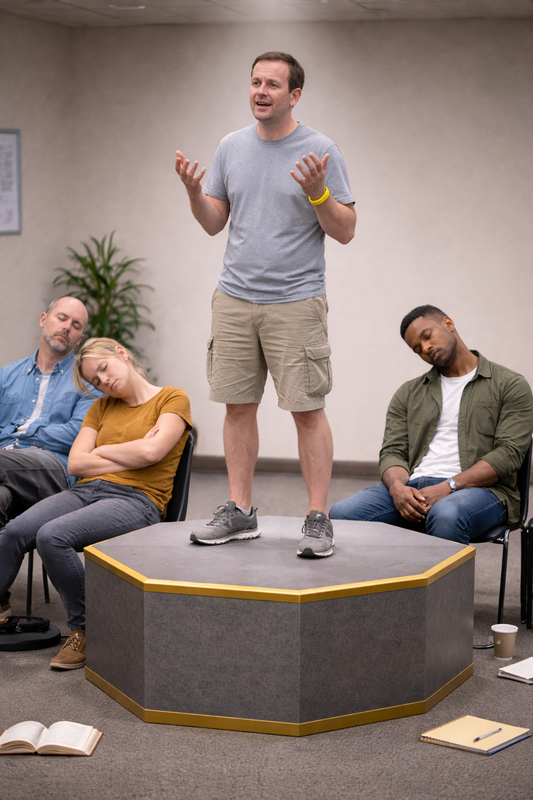 "Die buste stelt geen specifieke historische persoon voor. Het is zo’n generieke “klassieke denker” die je vaak ziet in beelden om intellectuele autoriteit te suggereren. Denk aan marmeren krullen, strenge blik, tijdloze ernst. Het is decor met pretentie."