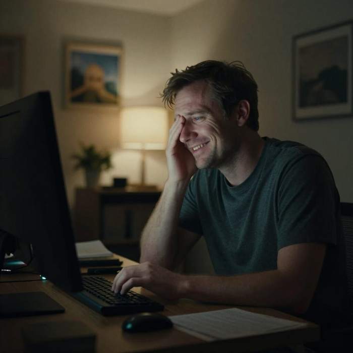 Ik twijfelde nog over de vorm OCD, maar vond deze gelaatsuitdrukking in combi met je humor op FOK! het beste bij je passen. Morgen een versie van Dall-E die geeft een iets creatiever resultaat en niet zo stijfjes