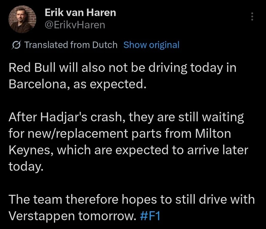 Gelukkig voor Red Bull zijn ze op maandag begonnen en kunnen ze zich dit veroorloven.quote:Op woensdag 28 januari 2026 14:07 schreef Starflyer het volgende: