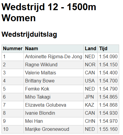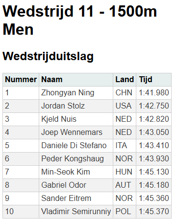 Ik kan de winnende tijd om een of andere manier niet invoeren, wel de top 5.