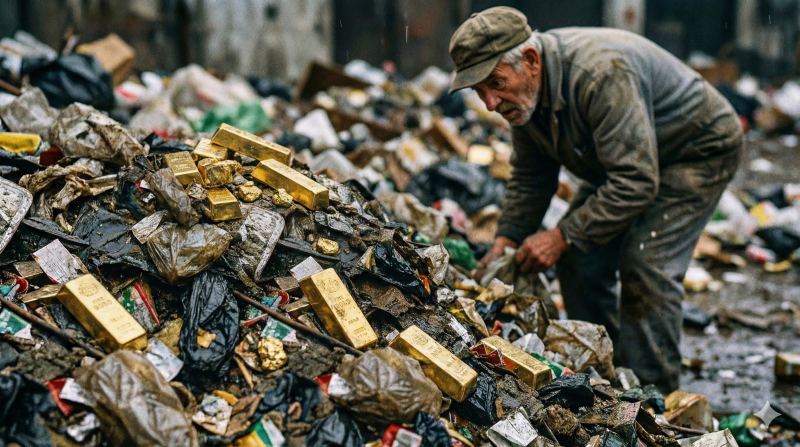 Een man uit de Zuid-Italiaanse provincie Lecce gooide per ongeluk 20 baren goud ter waarde van ongeveer ¤120.000 in de vuilnisbak. De politie wist de vuilniswagen te traceren naar de vuilstortplaats.