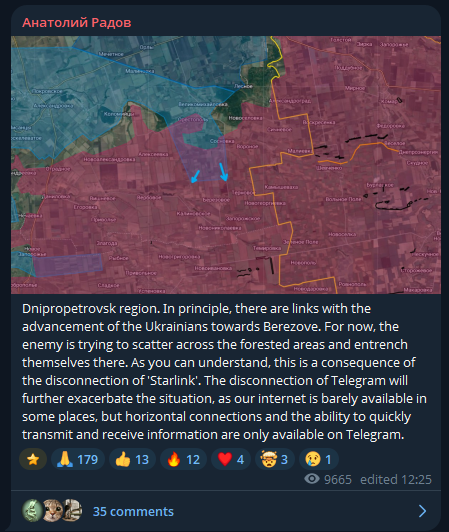 Wat betreft de territoriale winsten van Oekraïne in de afgelopen dagen: als onderdeel van offensieve operaties langs de as Pryluky-Rivnopil veroverde de tactische groep rond het 475e Luchtlandingsregiment Pryluky en het noordelijke deel van Varvarivka, waarmee een klein bruggenhoofd werd gevestigd op de oostelijke oever van de Haichur-rivier nabij laatstgenoemd dorp. Als onderdeel van offensieve operaties langs de as Verbowe-Novohryhorivka-Uspenivka bereikte de tactische groep rond de 95e Luchtlandingsbrigade de Skotovataya-kloof (47.83714, 36.4192), ongeveer 2,5 km ten noorden van Novohryhorivka. Bovendien veroverden eenheden van de 92e Luchtlandingsbrigade, als gevolg van de terugtrekking van de 5e Pantserbrigade die dreigde te worden afgesneden – waarover ik in het vorige bericht berichtte – de regio Vidradne en elementen van de 82e Luchtlandingsbrigade de regio Vyshneve.