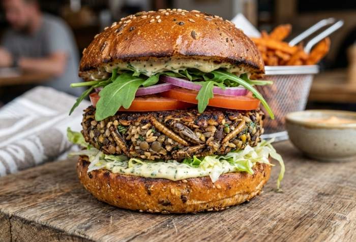 Vleesvervangende burger' - geen vegan- (@Gemini-AI-impressie)