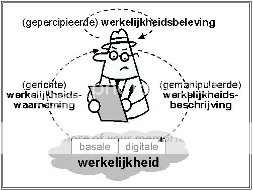 quote:Ik maak inderdaad onderscheid tussen de werkelijkheid (ofwel realiteit) en een waarneming van die werkelijkheid. Voor mij zijn de begrippen ‘feit’ en ‘verschijnsel’ nagenoeg synoniem. Toch verkies ik het begrip ‘verschijnsel’ omdat een ‘verborgen feit’ wèl een ‘feit’ maar geen ‘verschijnsel’ is. Voorbeeld binnen deze context: de persoon achter de personage Gajus is géén verschijnsel maar een verborgen feit. De werkelijkheid is de resultante van natuurlijke en menselijke krachten (en goddelijke krachten, voor de gelovigen onder ons). Onze duinen zijn ontstaan door natuurlijke krachten, onze dijken zijn ontstaan door menselijke krachten. Naar de oorspronkelijke betekenis van het woord ‘manipuleren’ (met handen beroeren) zouden ‘gemanipuleerde werkelijkheid’ en ‘werkelijkheid als resultante van menselijke krachten’ synonieme begrippen zijn. Echter, binnen het hedendaags taalgebruik heeft het woord ‘manipuleren’ de betekenis van ‘misleiden’ gekregen. De topictitel “gemanipuleerde werkelijkheid” ofwel “misleide werkelijkheid” is voor mij dan ook een volkomen raadsel. Een verschijnsel dat misleid is … wellicht, maar zoiets is niet relevant. Een verschijnsel bestaat en is waarneembaar, dat is relevant. quote:Het gaat om een sequentie van drie transformaties (input, troughput, output): 1) een verschijnsel wordt getransformeerd tot een zintuiglijk signaal, 2) een zintuiglijk signaal wordt getransformeerd tot een geestesbeeld in (het geheugen van) het brein 3) een geestesbeeld wordt getransformeerd tot een uiting in woord, geschrift e.d. Binnen elke transformatie kan een deformatie optreden. quote:In eerste instantie bestaan alléén basale verschijnselen. Basale verschijnselen doorlopen desgewenst de voornoemde transformatiesequentie, eindigend in een openbaring in de vorm van een webpagina, een MP3-opname, een krantenartikel, een wetsartikel, een beleidsnota enz.. Na openbaring zijn dit ook verschijnselen in de werkelijkheid. Deze laatste categorie noem ik de digitale verschijnselen. Idealiter geldt dat een digitale verschijnsel consistent is met de basale verschijnselen. quote:Onder de actor versta ik degene in wiens hoofd de drie transformaties plaats hebben. quote:Een bewering zoals “Het kwaadaardig Kapitaal dat beteugeld is (door Jan Marijnissen)” is een beschrijving van de toekomstige werkelijkheid, in de fantasie van J.M. c.s.. Door inzet van menselijke krachten (ofwel een activiteit) verandert de werkelijkheid. Zodoende kan J.M. bewerkstelligen dat de huidige werkelijkheid uiteindelijk verandert in een nieuwe werkelijkheid die consistent is met zijn verkiezingsbeloften. In dit voorbeeld is de digitale werkelijkheid richtinggevend voor de basale werkelijkheid. In de tijd van Ome Joop heette dit “de maakbare samenleving”. quote:De drie deformaties (door jouw fouten genoemd) treden onafhankelijk van elkaar op. Een deformatie kan te goeder trouw of te kwader trouw optreden. Een deformatie kan bewust of onbewust optreden. Een deformatie kan … <in studie>.  | |