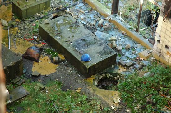 Ik heb vanmiddag een gat in het hek van de oude zuivelfabriek geknipt en heb fotos op het terrein gemaakt. Ook heb ik een open deur gevonden waardoor ik naar binnen kon komen, tenminste, in de eerste, ziekelijk grote hal. Ik wil ook nog verder naar binnen proberen te komen, maar het word na vijf meter echt pikdonker. (Alles is dichtgespijkert.) Ik zal dus eerst op zoek moeten naar een aantal forse zaklampen.