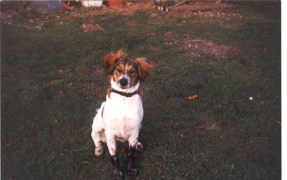 Modderpoten en modder op haar snuit ![]() Nee joh, ze kijkt niet boos maar vrolijk. Ze was ontsnapt en had een uur op de konijnen op de akkers gejaagd ![]() | |