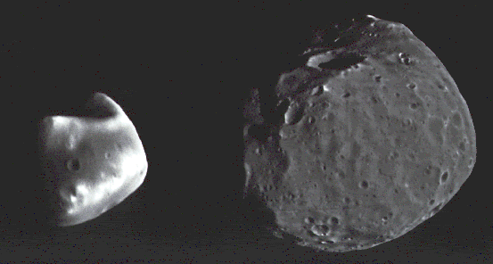 Zijn Phobos en Deimos geen ingevangen meteorieten of door meteorieten losgeslagen stukjes Mars? Het zijn in elk geval geen gestolde gasbollen. En iets wat eenmaal gestold is en nog niet bol is, wordt dat ook niet meer (niet onder invloed van zijn eigen zwaartekracht).